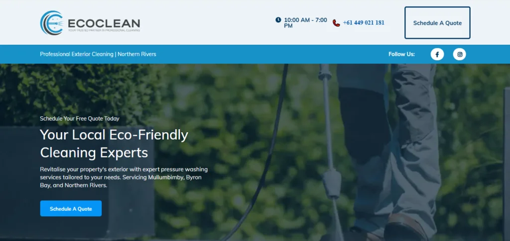 Our team focused on crafting a user-friendly, responsive design that adapts seamlessly to all devices, ensuring that visitors enjoy a smooth and intuitive browsing experience. With a clean and modern layout, the website provides easy navigation, allowing users to quickly find the information they need and explore EcoClean Northern Rivers’ offerings with ease. Key features such as online booking, service details, and contact information are prominently displayed, making it convenient for customers to engage with the business.
