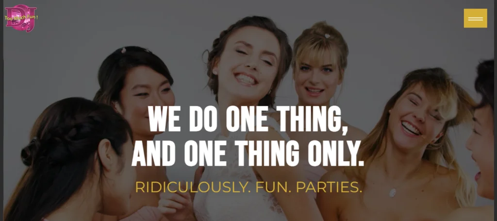 Overall, the Too Much Fun DJ website redesign successfully enhances the brand’s digital presence, offering an immersive and enjoyable experience for users while effectively communicating the company’s vibrant and energetic spirit. This project not only improves brand perception but also aims to increase user engagement, drive bookings, and support the company’s marketing efforts.